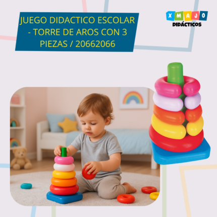 JUEGO DIDACTICO ESCOLAR – TORRE DE AROS CON 3 PIEZAS / +3 AÑOS / 20662066