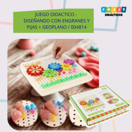 JUEGO DIDACTICO – DISEÑANDO CON ENGRANES Y PIJAS + GEOPLANO / +3 AÑOS / 004814