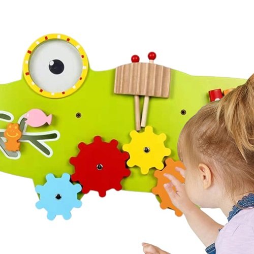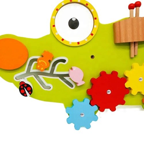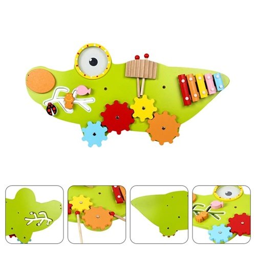 ¡Panel Montessori cocodrilo con engranajes, xilófono y lupa: diversión sensorial y desarrollo para bebés de 18m-5a! 🐊🔄🎶🔍✨
