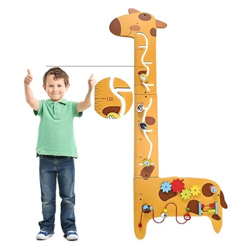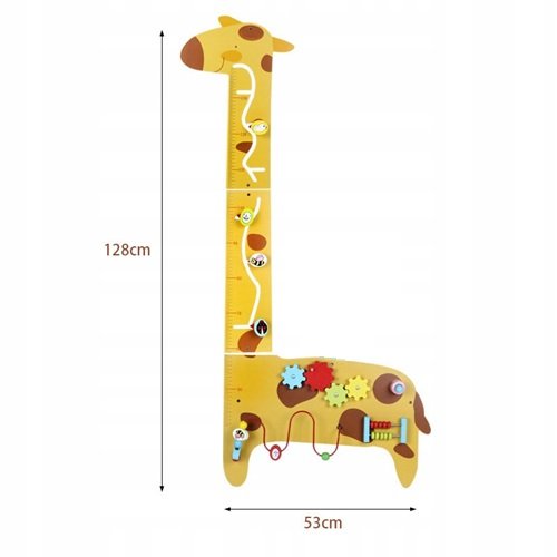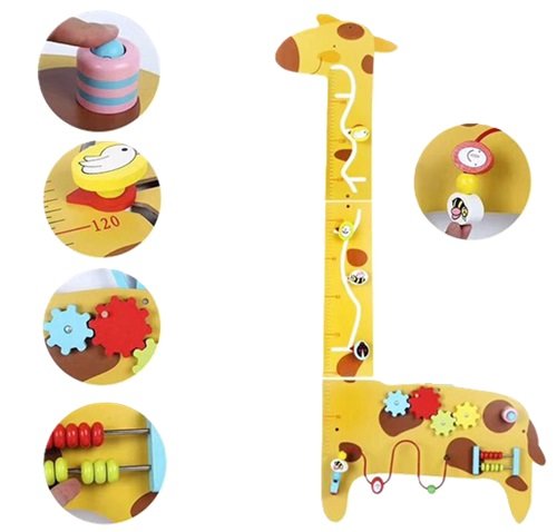 ¡MEDIDOR JIRAFA MULTISENSORIAL DE PARED! 🦒📏 Altura + 8 actividades en una sola pieza de madera. ¡Aquí lo que necesitas!