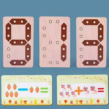 Set educativo de madera que incluye números del 0 al 9 formados por palitos marrones con agujeros para insertar clavijas (o contar directamente), más tarjetas ilustradas de sumas y restas con dibujos divertidos de animalitos y frutas. El niño arma el número con los palitos, coloca clavijas en los agujeros y resuelve operaciones básicas (ej. 3 + 5 = 8) de forma concreta y visual. Incluye unas 20-30 tarjetas con ecuaciones simples. 🌟🔢🍎🐸 Ideal para aprender matemáticas tempranas de manera táctil, autónoma y súper divertida. ¡Arma, cuenta, suma y resta jugando! ✨🧮