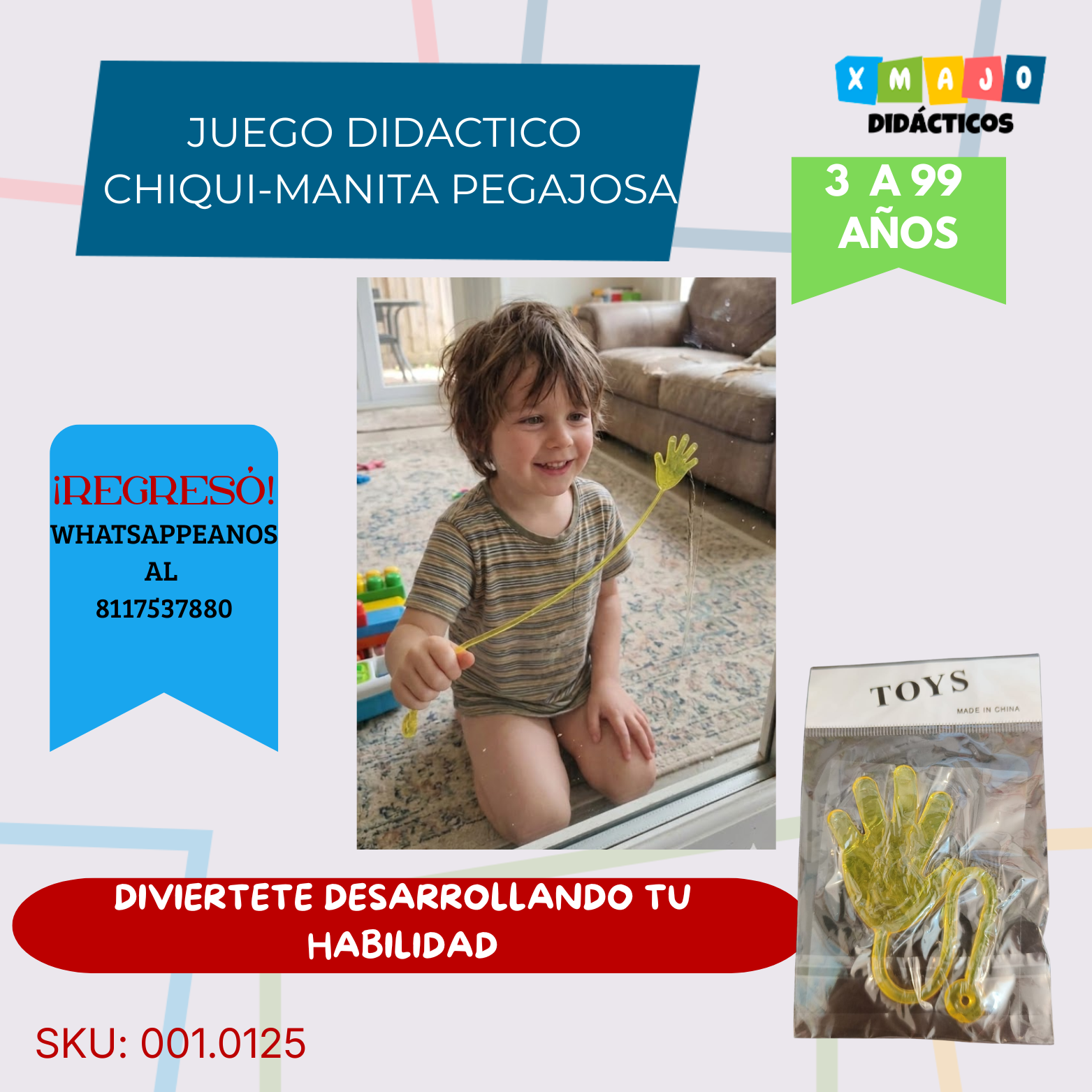 JUEGO DIDACTICO – CHIQUI-MANITAS PEGAJOSAS SENSORIALES /+3 AÑOS / 001.0125