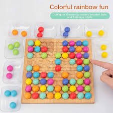 Material: Madera certificada + bolitas plásticas resistentes en colores vibrantes 🌿