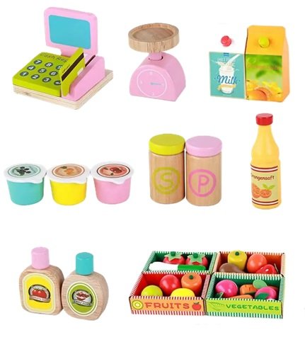 - Motricidad fina al máximo: usar caja registradora, meter monedas, pesar frutas, escribir en la pizarrita.