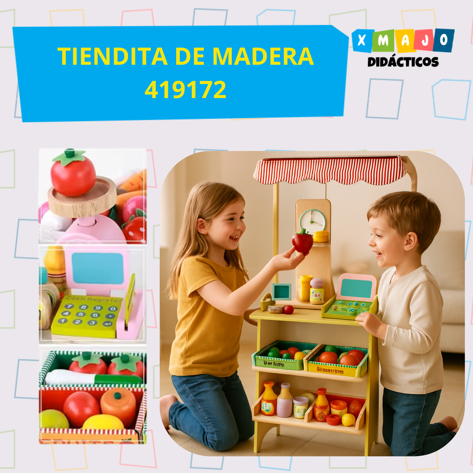 MERCADITO DE MADERA + ACCESORIOS COMPLETO