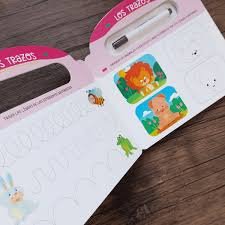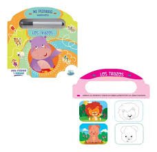 Librito pizarra reutilizable con diseño adorable de hipopótamo y animalitos, incluye plumón borrable (marcador de agua) para practicar trazos guiados, líneas curvas, zigzags, formas y preescritura. Las páginas con dibujos divertidos y caminos punteados invitan a seguirlos, borrar y repetir infinitamente sin papel ni desperdicio. 🌈✏️🦛🐒 Ideal para desarrollar habilidades previas a la escritura de forma lúdica y sin presión. ¡Escribe, borra y vuelve a empezar! ♻️🎨
