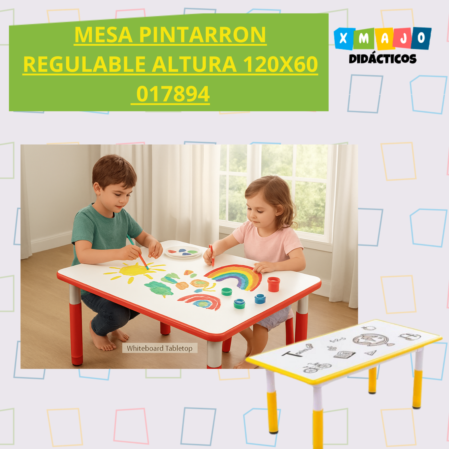 MATERIAL EDUCATIVO – MESA PINTARRON REGULABLE EN ALTURA 120X60 / +3 AÑOS / 017894